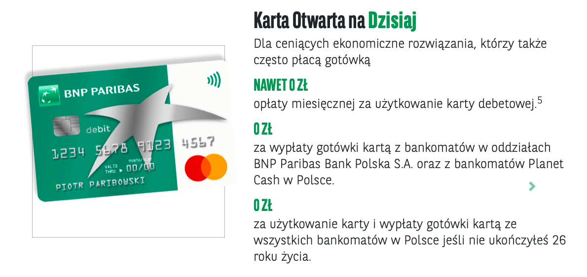 Mając Konto Otwarte na Ciebie nie ponosisz opłaty za prowadzenie rachunku, a kartę debetową do konta wybierasz sam, taką jaka Ci pasuje!
