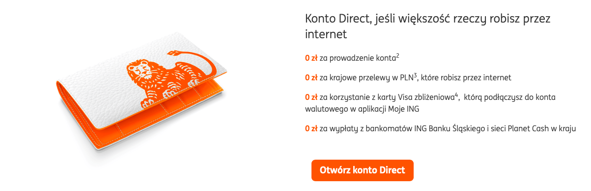 - założysz konto Direct albo Komfort z kontem oszczędnościowym i kartą do konta,