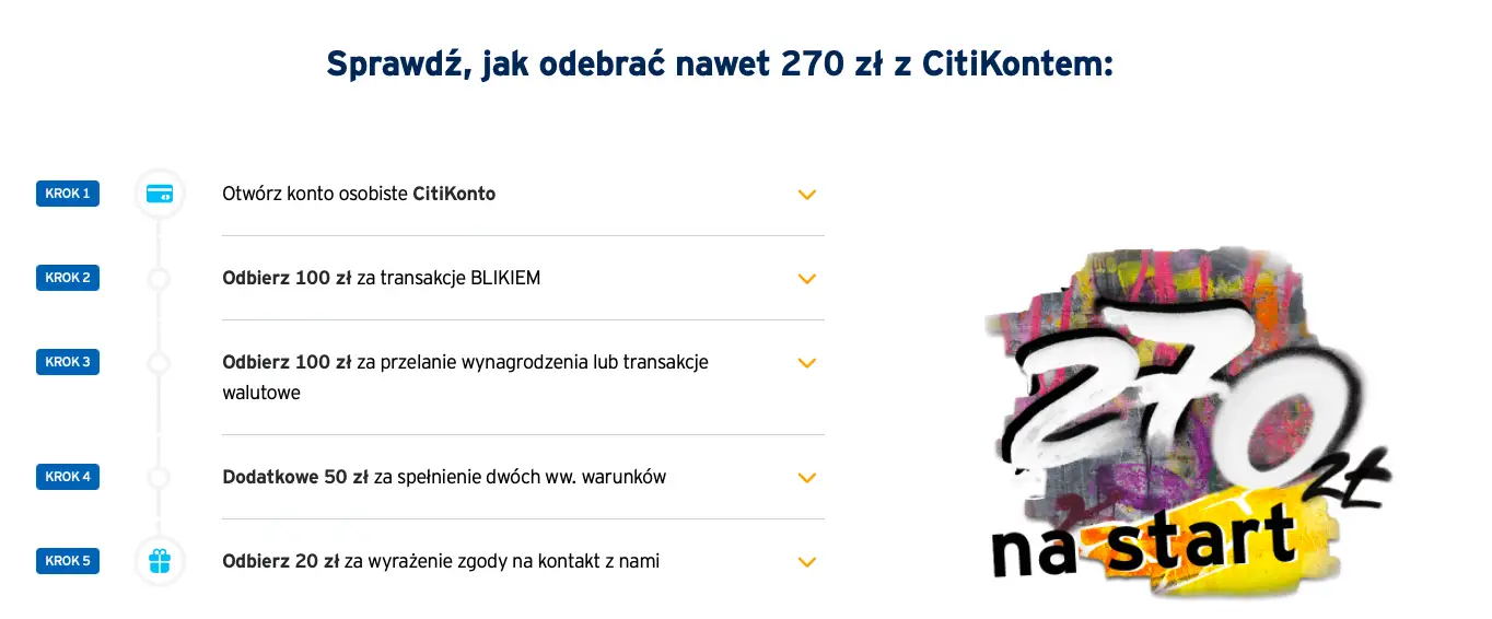 Nie tylko 270 zł na start! Z CitiKontem zyskujesz: