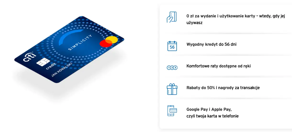 Zainstaluj aplikację Citi Mobile na telefonie. Aktywuj Kartę Kredytową w aplikacji lub w serwisie bankowości internetowej Citibank Online. Następnie, nie później niż do końca 1 miesiąca kalendarzowego następującego po miesiącu zawarcia Umowy o Kartę, przynajmniej raz zaloguj się do aplikacji lub na Citibank Online.