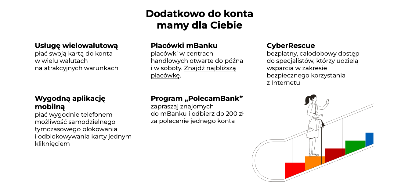 Z mBankiem to proste dzięki promocyjnemu oprocentowaniu 2% i funkcji automatycznego odkładania -przy płaceniu kartą, robieniu przelewu czy wypłacie pieniędzy z bankomatu małe kwoty zasilają Twój cel.
