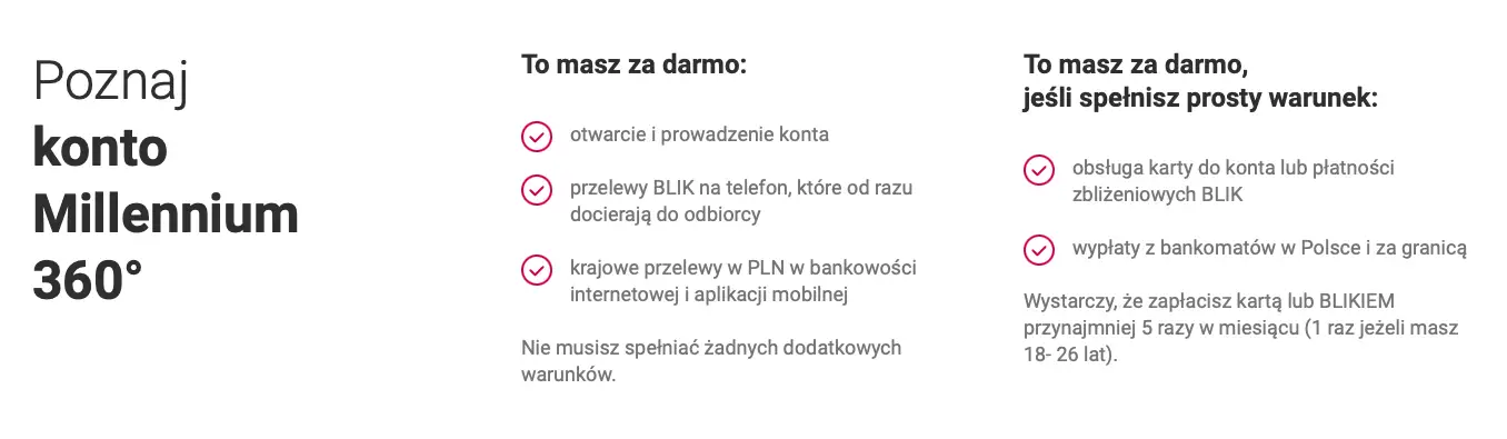 Konto w promocji możesz otworzyć do 31.07.2022 r. Obowiązuje limit 40 000 kont. Szczegóły w regulaminie promocji "Zyskaj 360 zł z kontem Millennium 360°".