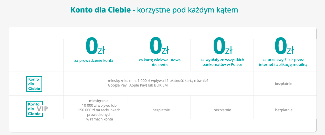 Bank wymaga od nas zapewnienia wpływów na konto przez 3 kolejne miesiące kalendarzowe zaczynając najpóźniej od miesiąca następującego po miesiącu podpisania umowy o konto. Ważne jest to że wpływ nie może być zrobiony z własnego innego konta.