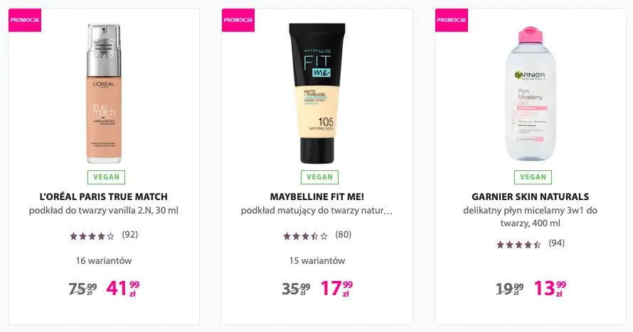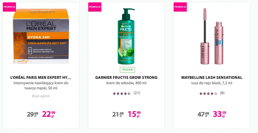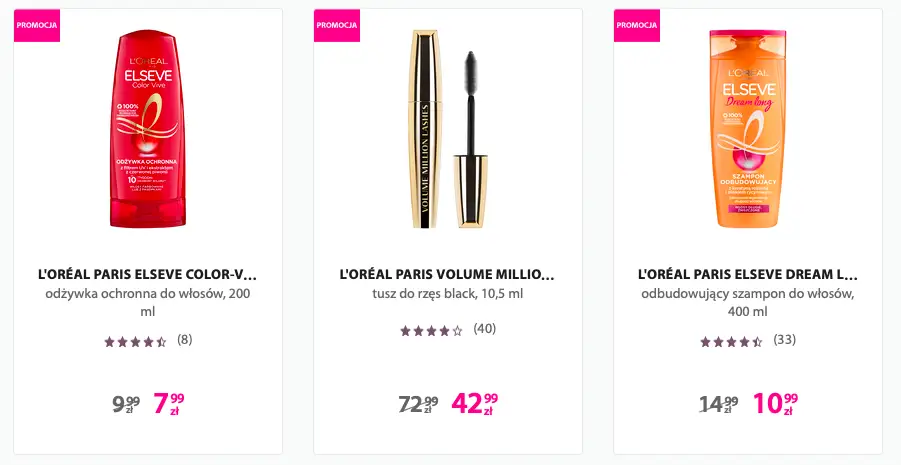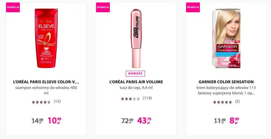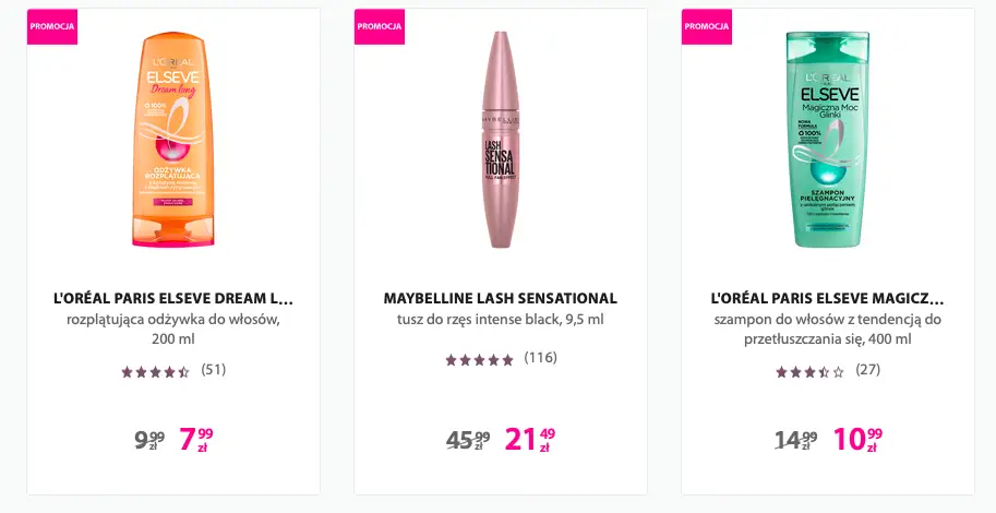 Szeroki wybór kosmetyków najwyższej jakości, uznanych i lubianych przez miliony kobiet. Wszystkie, nawet najbardziej wymagające miłośniczki kosmetyków znajdą tu niezbędne produkty do makijażu, pielęgnacji włosów, ciała i paznokci.​​