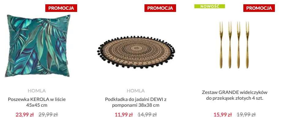 Produkty marki Homla zostały stworzone po to, by życie konsumentek było prostsze, bardziej wygodne i piękne. Oferta Homla to kompleksowe wyposażenie salonu, sypialni, kuchni, łazienki oraz tysiące dekoracji i prezentów na każdą okazję. Marka oferuje wyjątkowy design w najlepszej cenie.