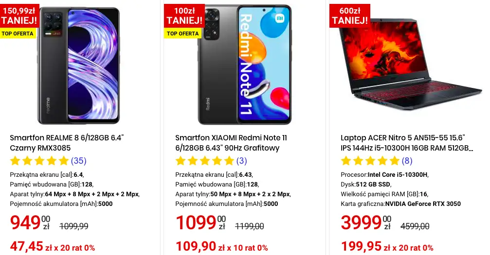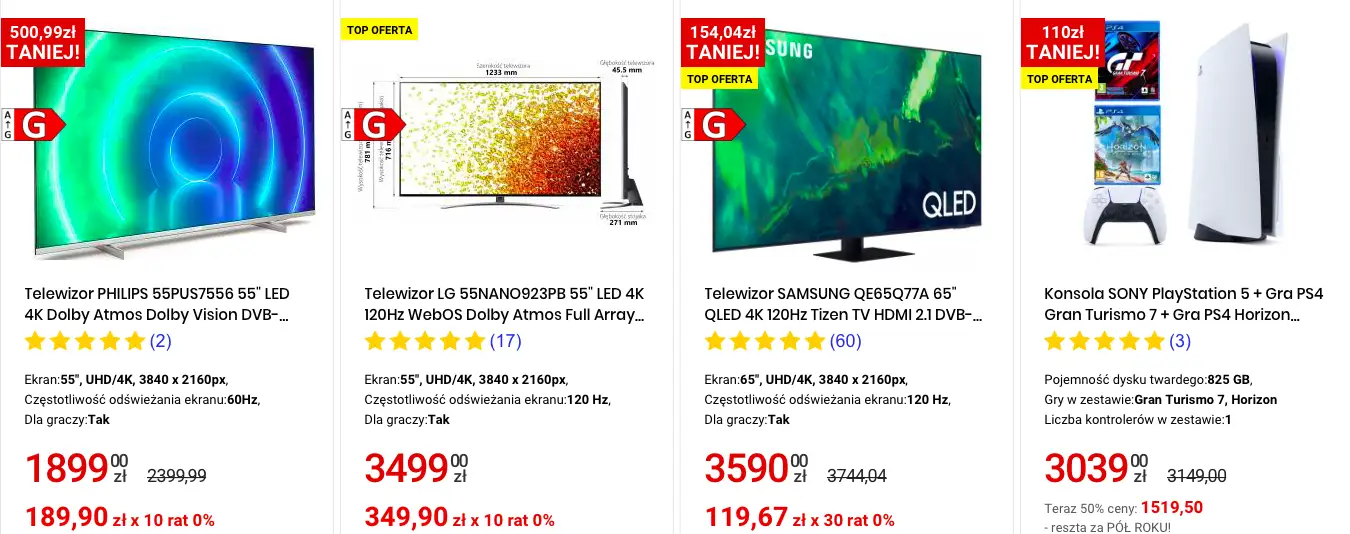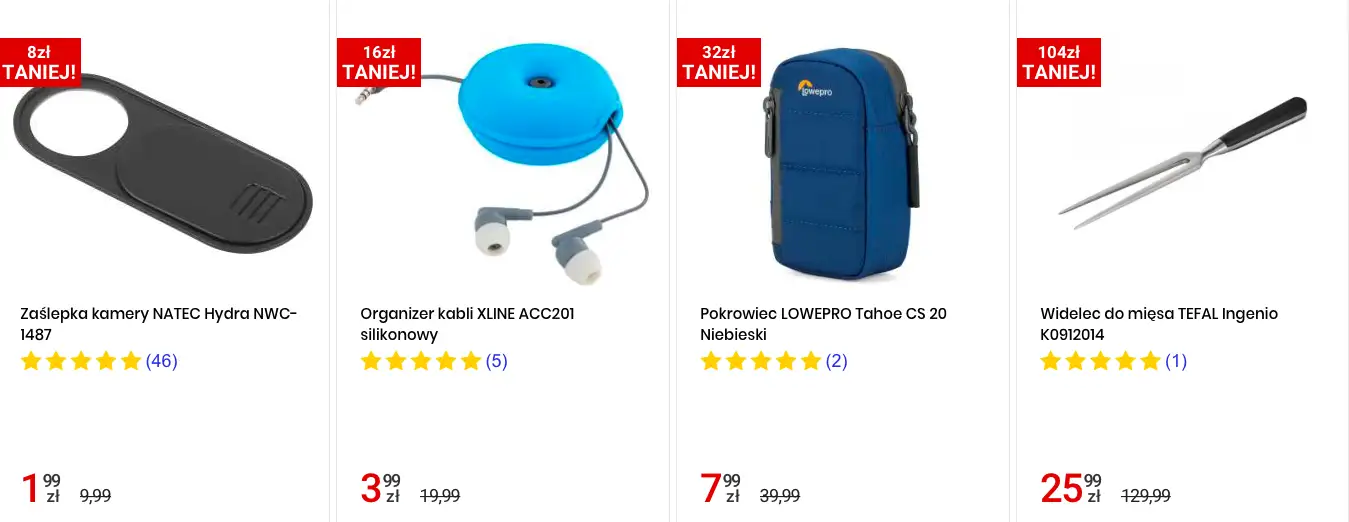 W asortymencie sklepu możemy znaleść laptopy, tablety, smartfony, sprzęt fotograficzny, RTV i AGD, a w wybranych sklepach również rowery, skutery, quady, elektronarzędzia, sprzęt relaksacyjny oraz sprzęt do pielęgnacji ogrodów.​
