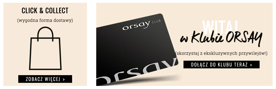 Sklep internetowy ORSAY jest dla kobiet, których ubiór pełni ważną rolę w wyrażaniu własnego stylu. W ofercie prezentuje bogaty wybór ubrań oraz dodatków w przystępnych cenach. Kolekcje łączą ze sobą aktualne trendy, modne sylwetki oraz ciekawe dodatki. Od idealnie dopasowanych jeansów po eleganckie stroje biurowe, piękne sukienki oraz akcesoria na imprezę lub wesele. Ubrania sprawiją, że będziesz wyglądała dobrze niezależnie od okazji. W sklepie online znajdziesz wszystko, czego pragnie Twoje modowe serce.