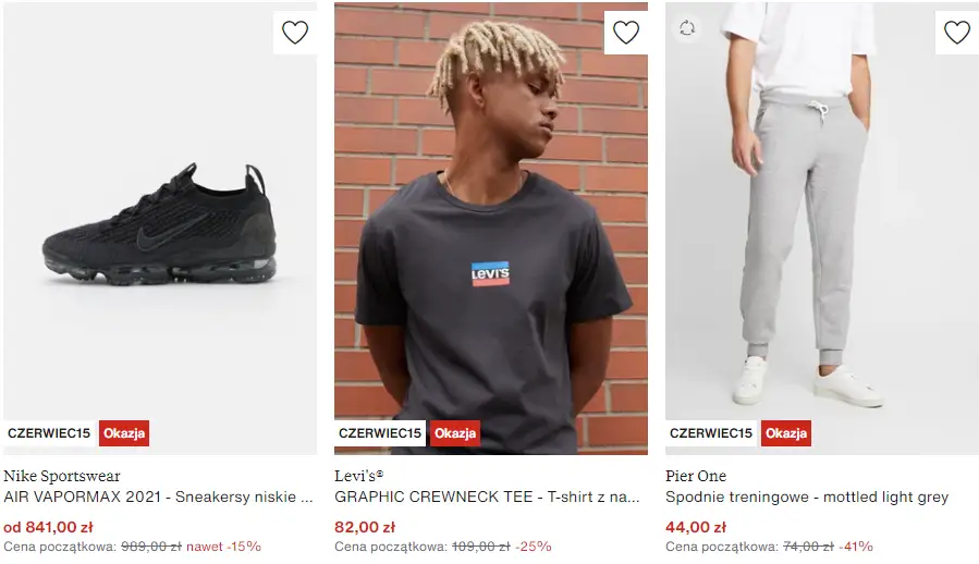 Na zalando znajdziesz wszystkie typy ubrań. Poprzez spodnie, koszulki, sukienki jak i bielizne. A także kosmetyki czy także akcesoria lub obuwie.Już teraz ekstra -15% na rzeczy przecenione do 50%. Wyjątkowe okazje na dobry początek.